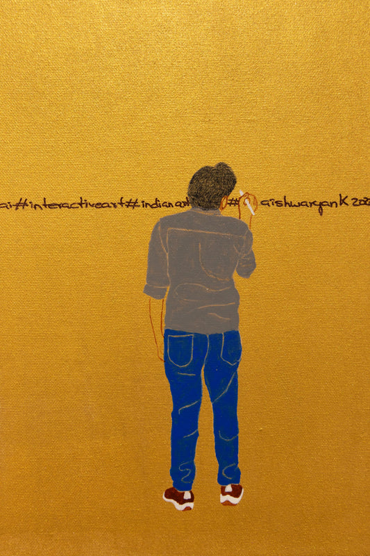 Aishwaryan K's works draw inspiration from personal experiences and immediate surroundings, inviting viewers to connect with their own realities. He holds a Post-Diploma in Printmaking from Bangalore University. He was honored with the 44th Karnataka Lalit Kala Akademi State Award in 2016. A highlight of his career includes his solo project "The Artist’s World," curated by Vaishnavi Ramanathan, exhibited at the Mumbai Art Room in 2015. Aishwaryan has also participated in the 'Seattle Art Fair, 2023', Gallery Sumukha, Seattle; 'Miniature Postage Stamp', Nippon Gallery, Mumbai (2023); and 'Myriad Nuances: An Indian Dimension', K-Art International Exchange and InKo-Centre, Chennai (2022).