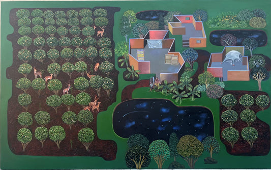 Pavan Kavitkar's art practice is a reflection of the accumulated clusters of his experiences during shifts and changes in natural and urban spaces while relocating for work, home, and artistic identity. He earned his Bachelor of Fine Arts from Sir J. J. School of Arts, Mumbai, India, in 2014, and his Master of Fine Arts from Kala Bhavana, Visva-Bharati University, Santiniketan, W.B., India, in 2017. Kavitkar views artistic creation as a journey of self-discovery and satisfaction, emphasizing the importance of artists observing the world around them. His affinity for nature and its portraiture serves as a constant motivation throughout his artworks.