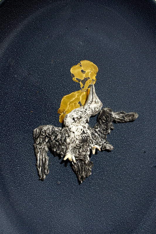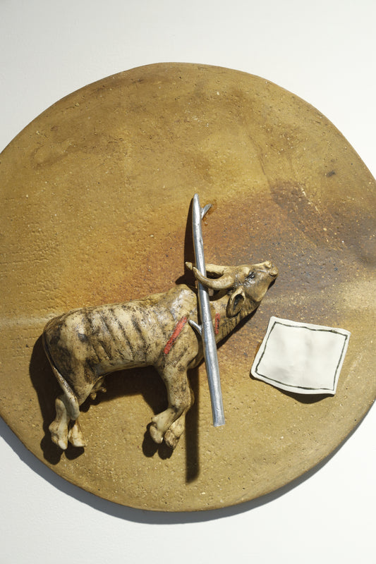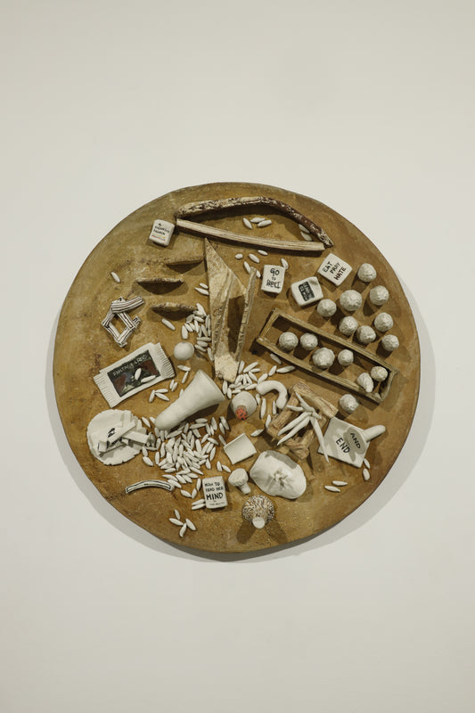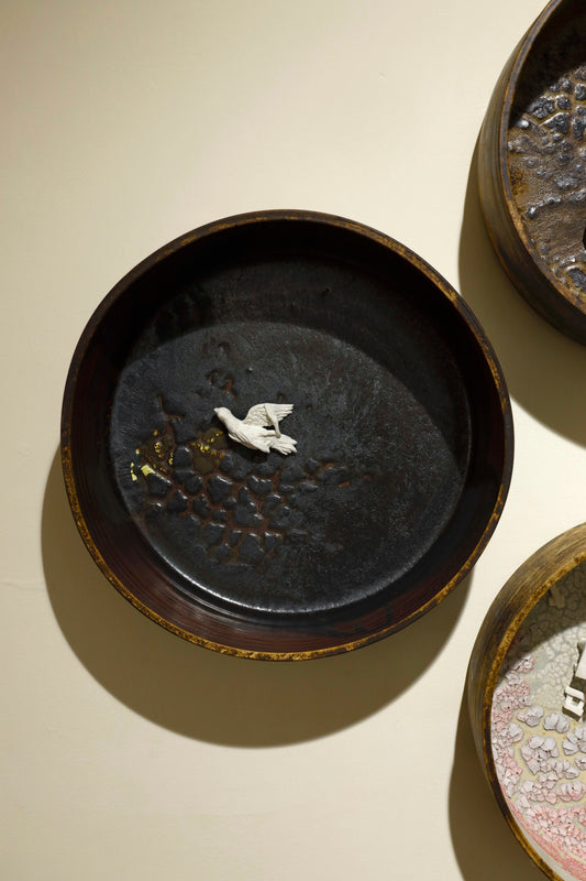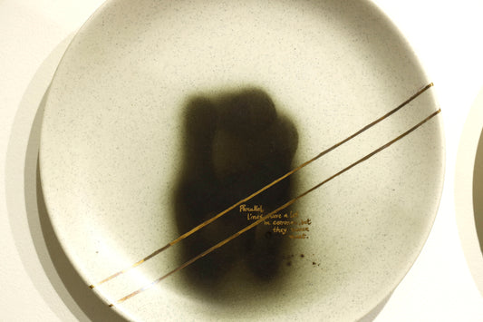 Graduating from the Government College of Art & Craft, Kolkata with a specialization in Ceramic Art and Pottery, Chowdhury’s practice pushes the technical and conceptual boundaries of ceramics. His forms are often punctuated with textual interventions and satirical gestures, constructing a visual language that is simultaneously visceral and contemplative. He mines the intimate and the everyday, translating moments of absurdity, beauty, and existential unease into layered compositions that read as both personal artefacts and social critique.