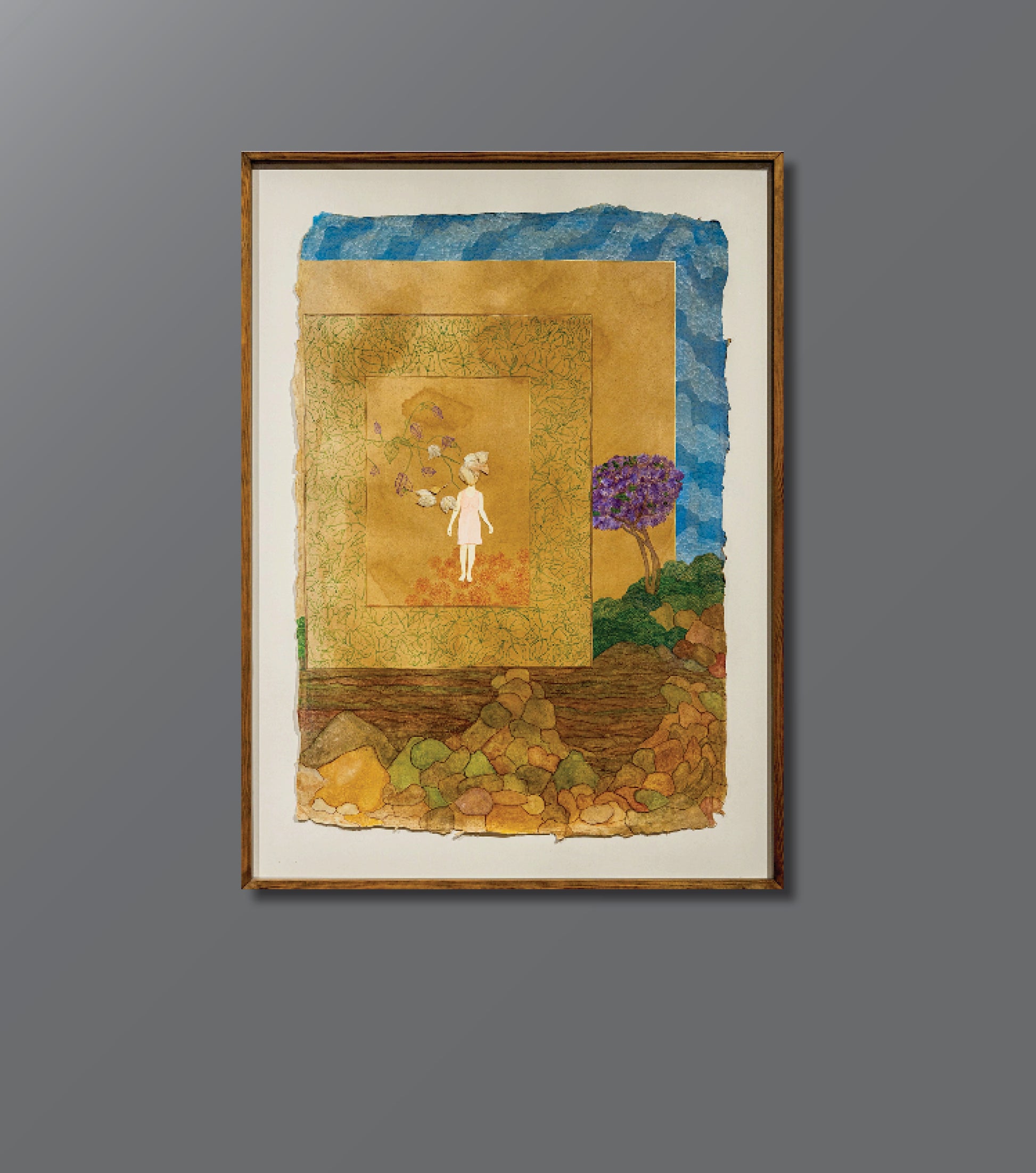 Mix-media on tea tone wasli paper